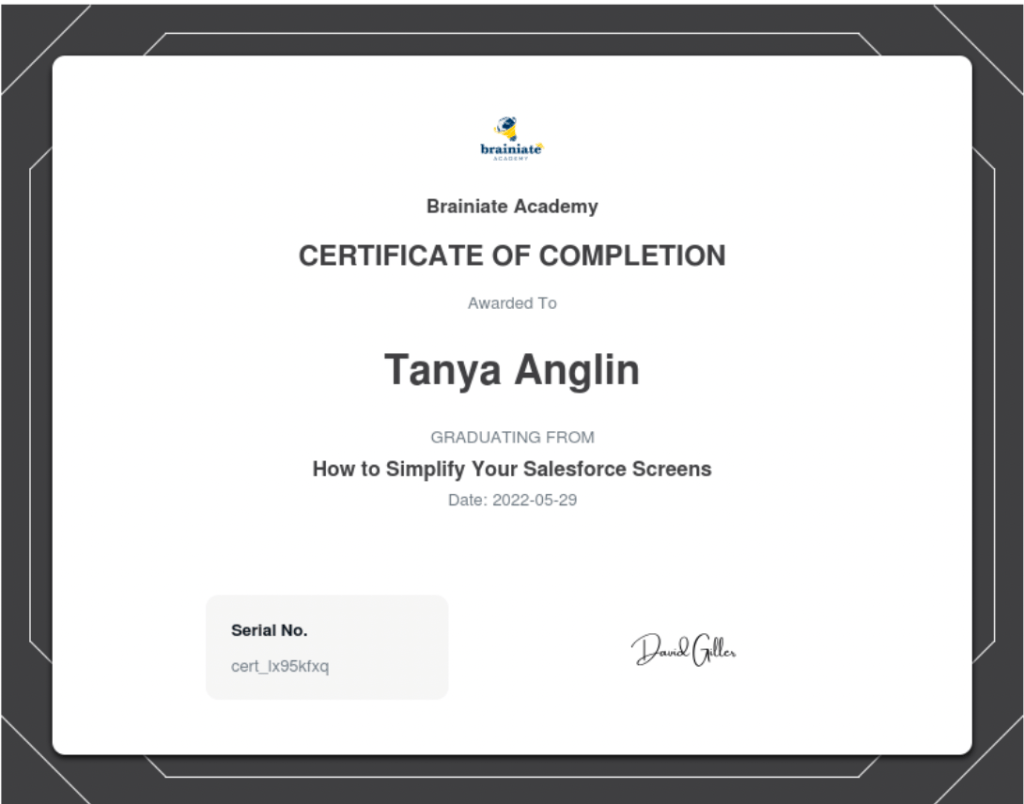 Another course I recently took is the Brainiate Academy “How to Simplify Your Salesforce Screens”. This was short and sweet and super valuable. I picked up some great tips and a thorough understanding of best practices.